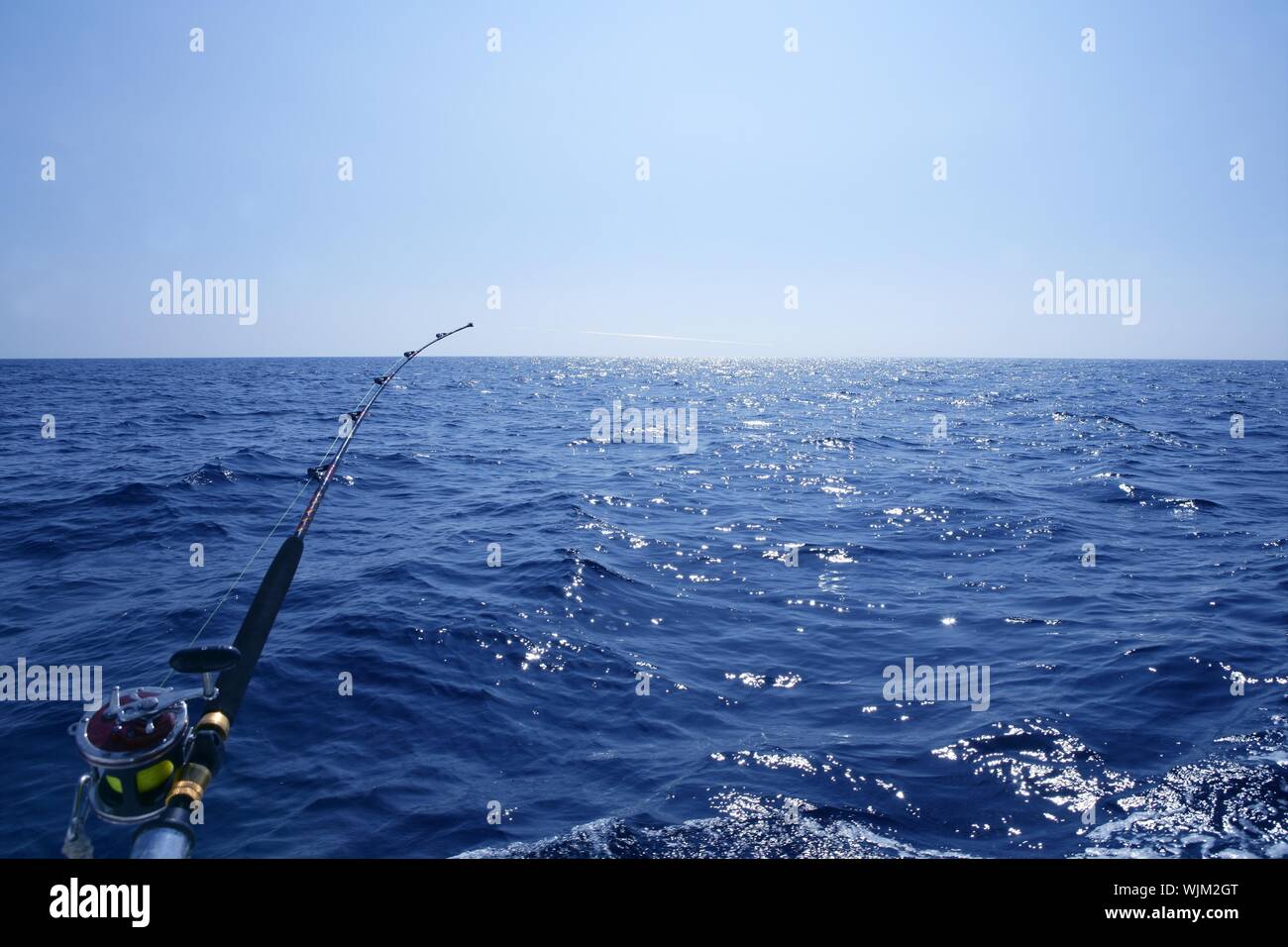 Fishing On The Boat With Trolling Rod And Reel Blue Mediterranean