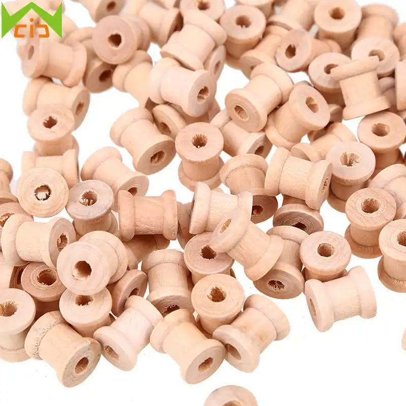 Wcic 100pcs Empty Wooden Bobbin Spools Wood Thread Holder Wire