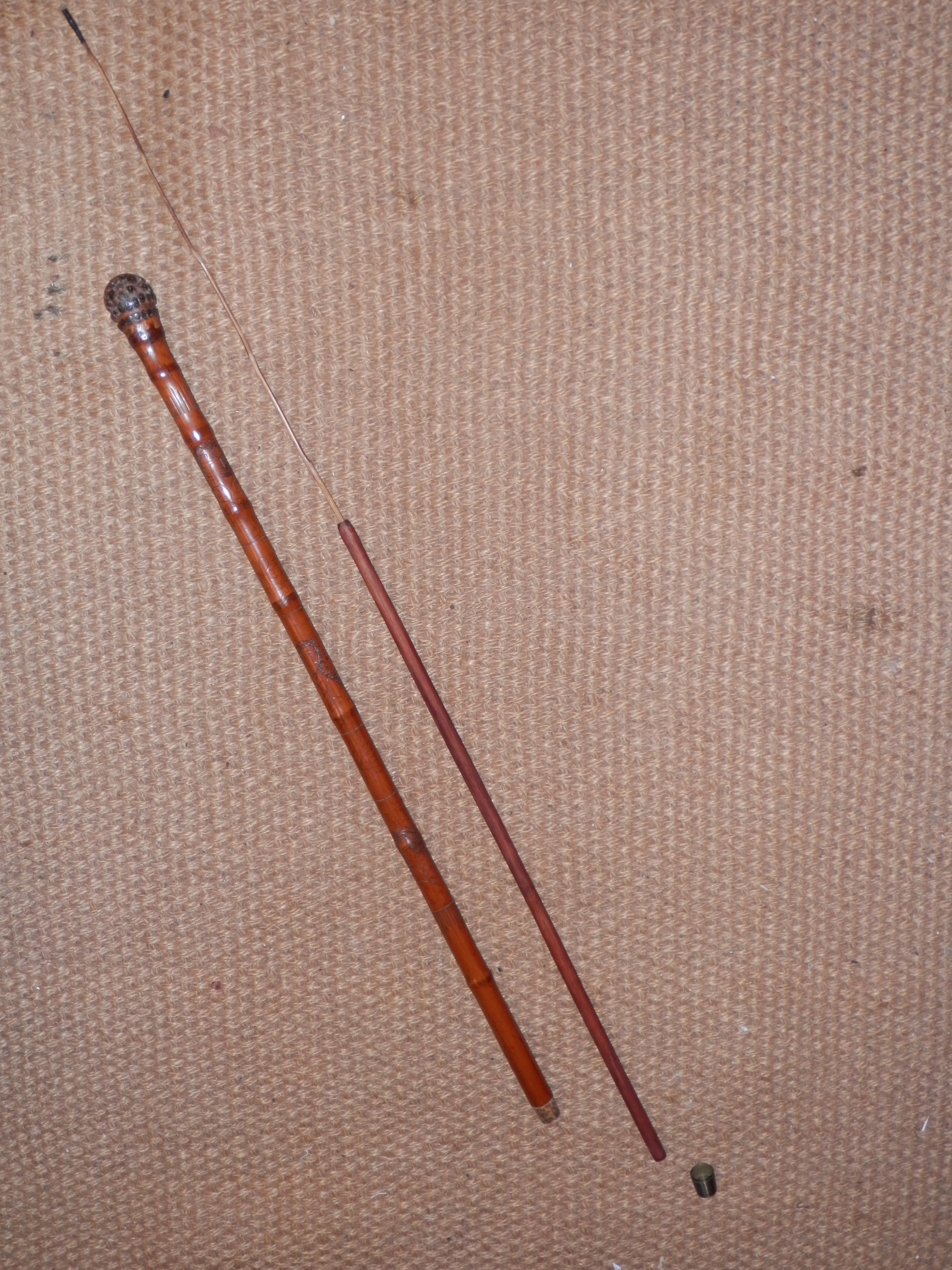 Antique Bamboo Chinese Carved Concealed Fishing Rod Gadget Walking