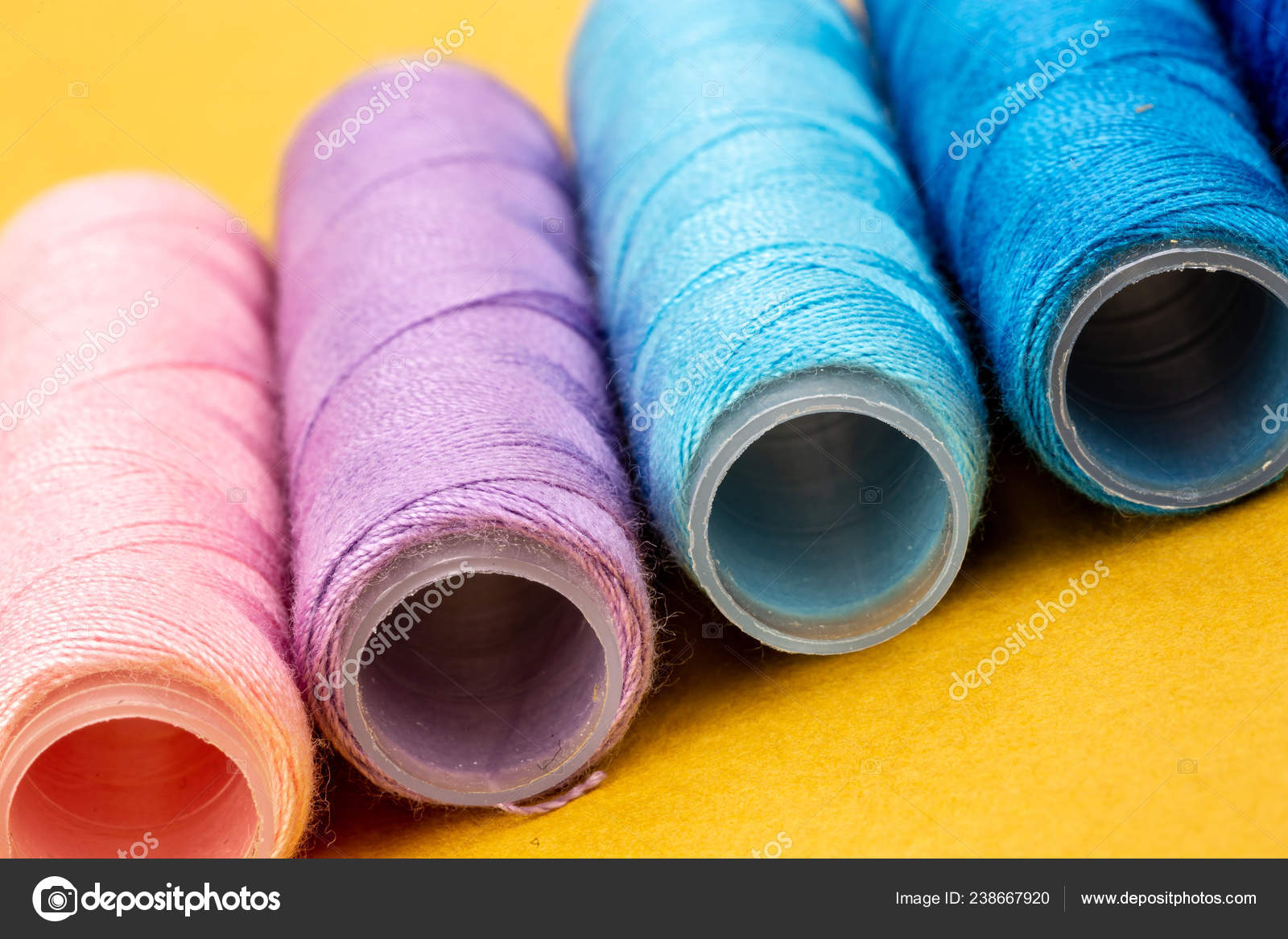 Closeup Group Colorful Spools Thread Used Sewing Needlework