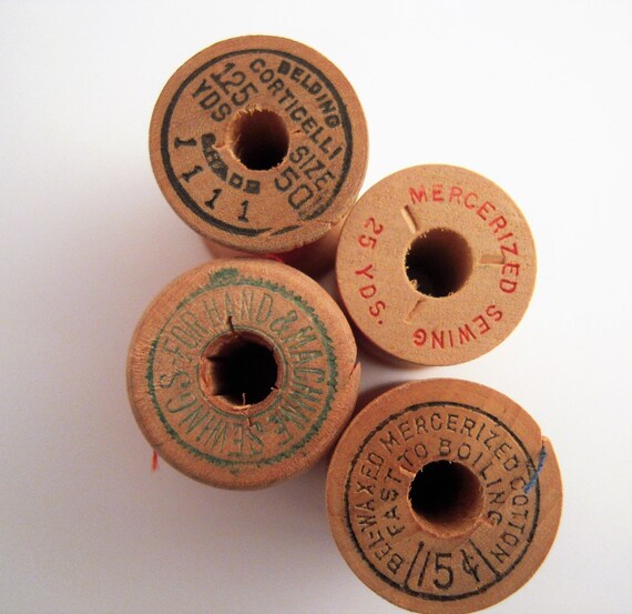 4 Vintage Wooden Spools Antique Stamped Wood Thread Spools Etsy