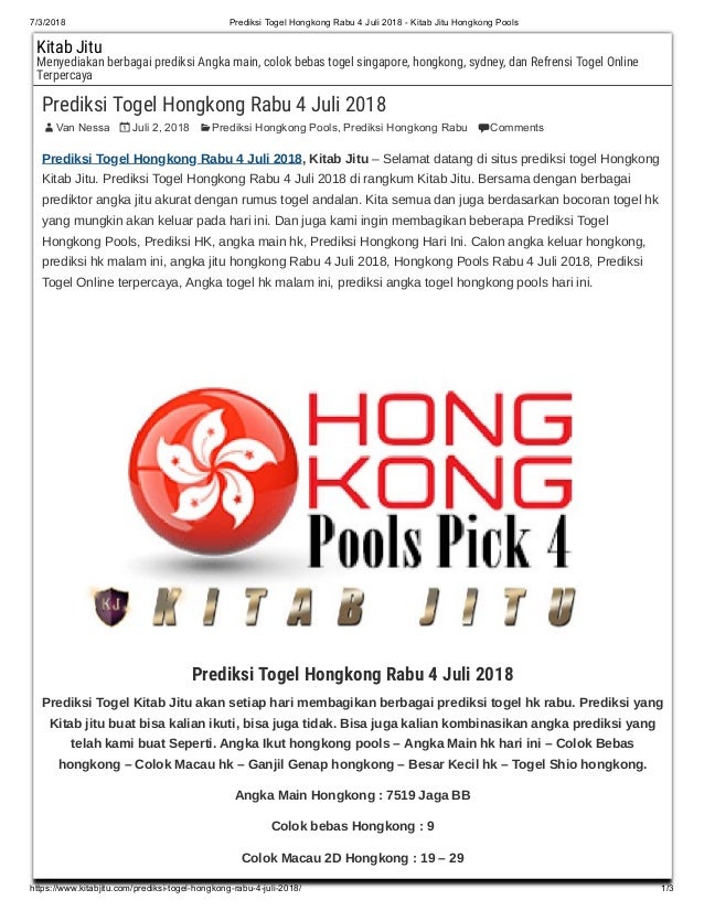 Prediksi Togel Hongkong Rabu 4 Juli 2018 Kitab Jitu Hongkong Pools