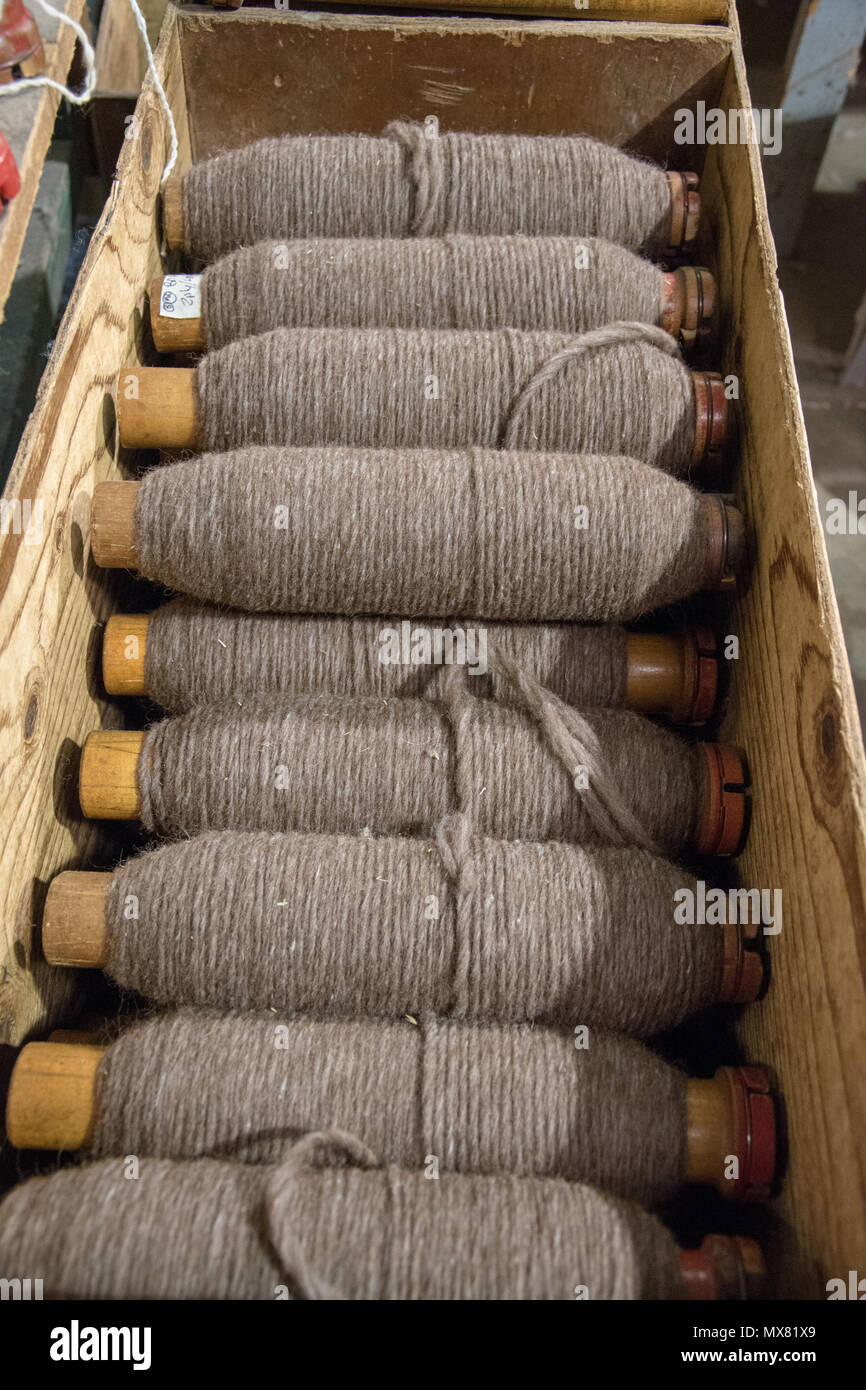 Beige Spools Of Worsted Yarn Waiting To Be Spun Into Skeins