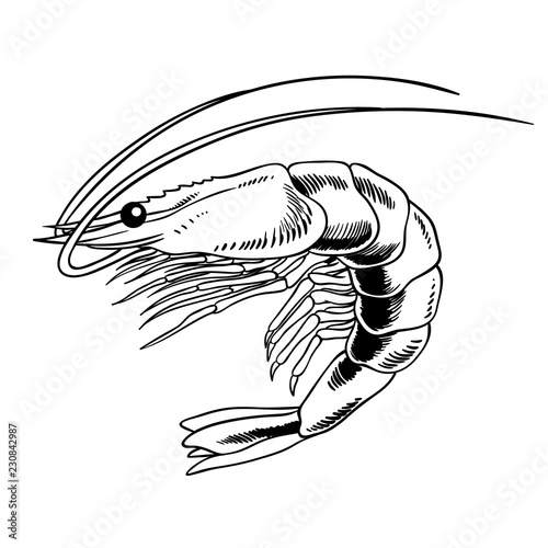 Shrimp Hand Drawn Seafood Black And White Illustration Vector