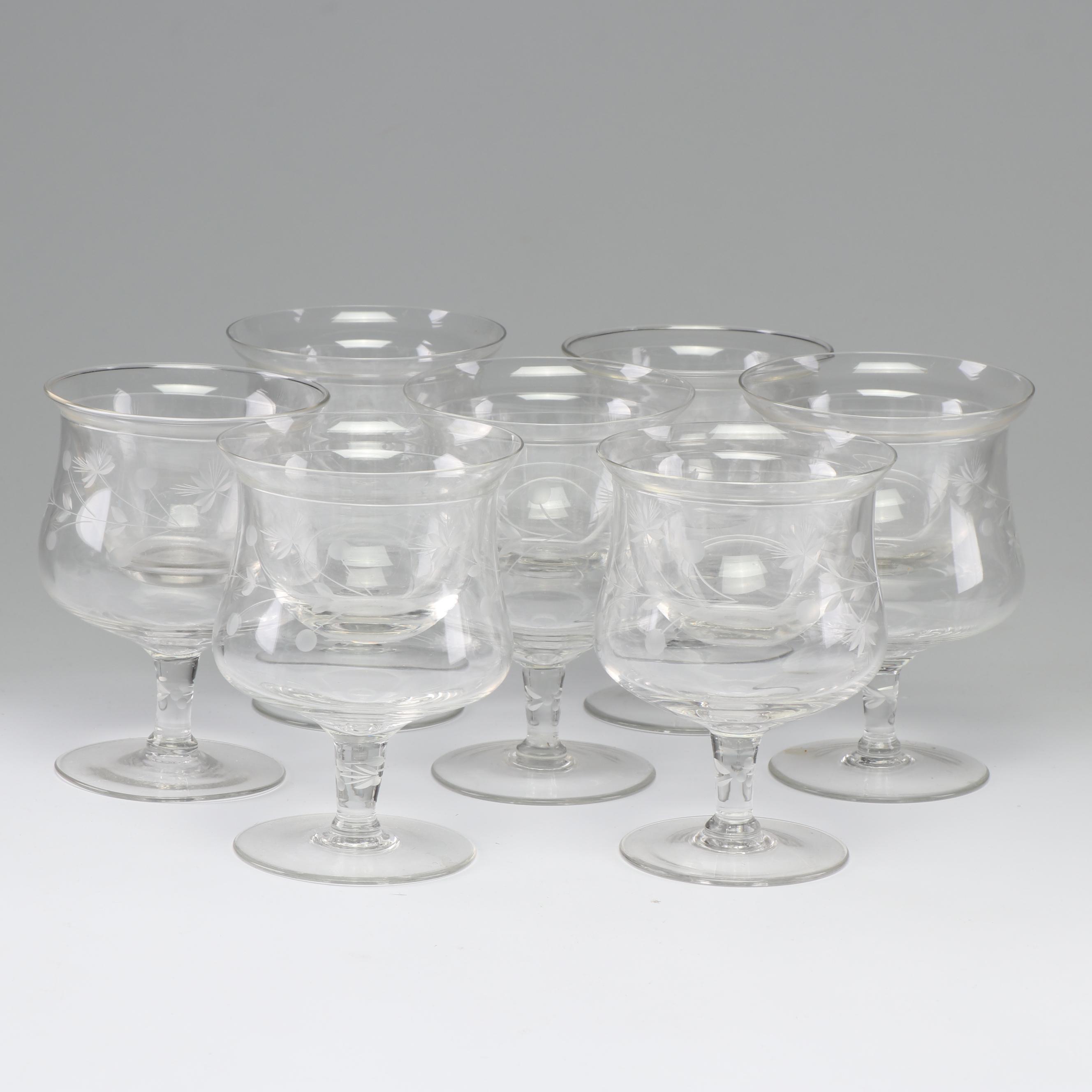 Etched Glass Shrimp Cocktail Servers With Glass Liners Ebth