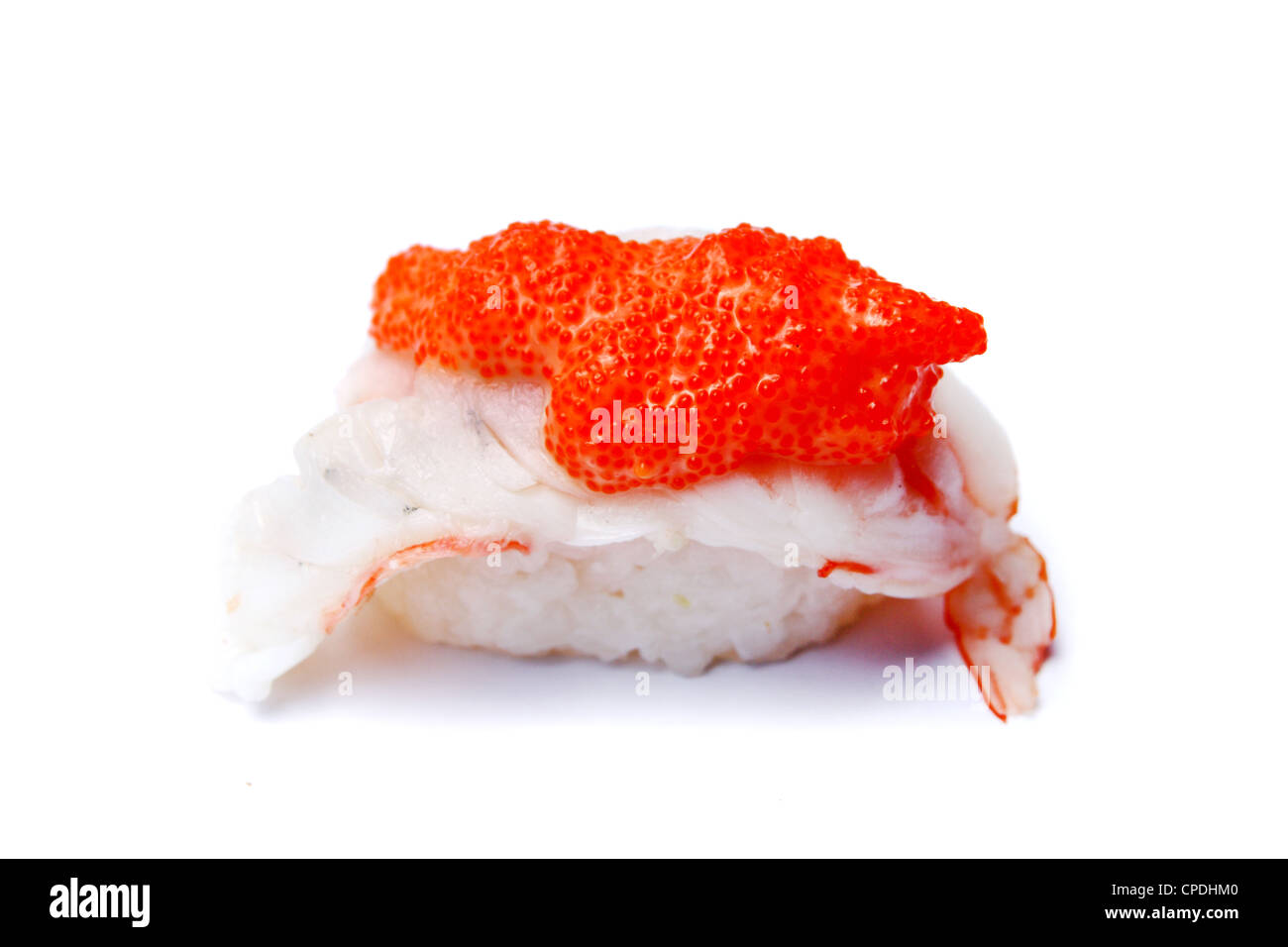 Prawn Or Shrimp Nigiri Sushi With Flying Fish Egg Stock Photo