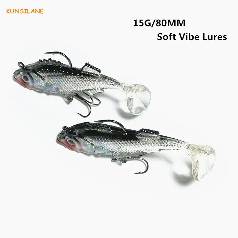 2pcs Lot Soft Plastic Vibe Fishing Lure 15g 80mm Jig Heads