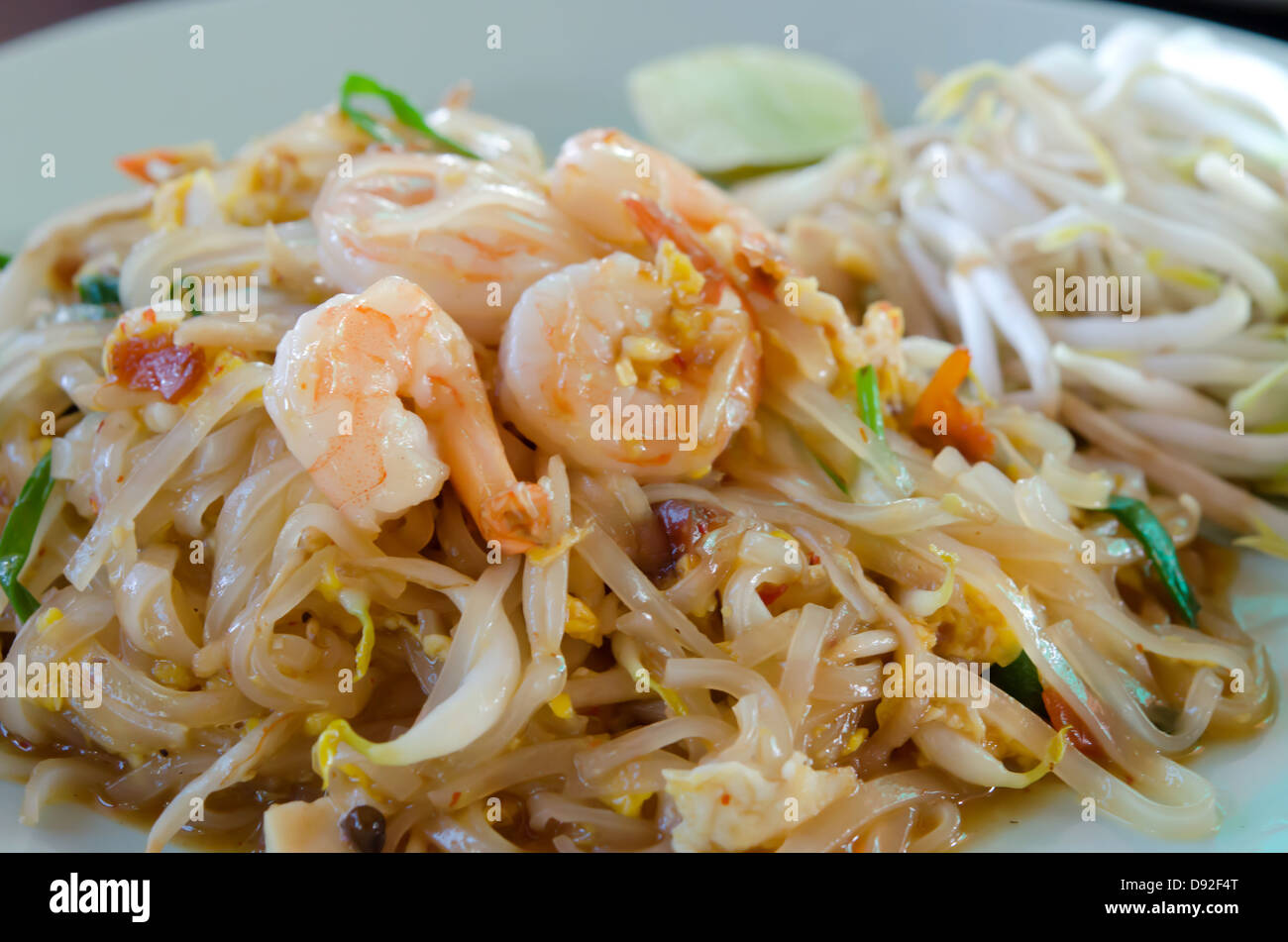 Stir Fried Noodles With Shrimp Egg And Fresh Vegetable On Dish