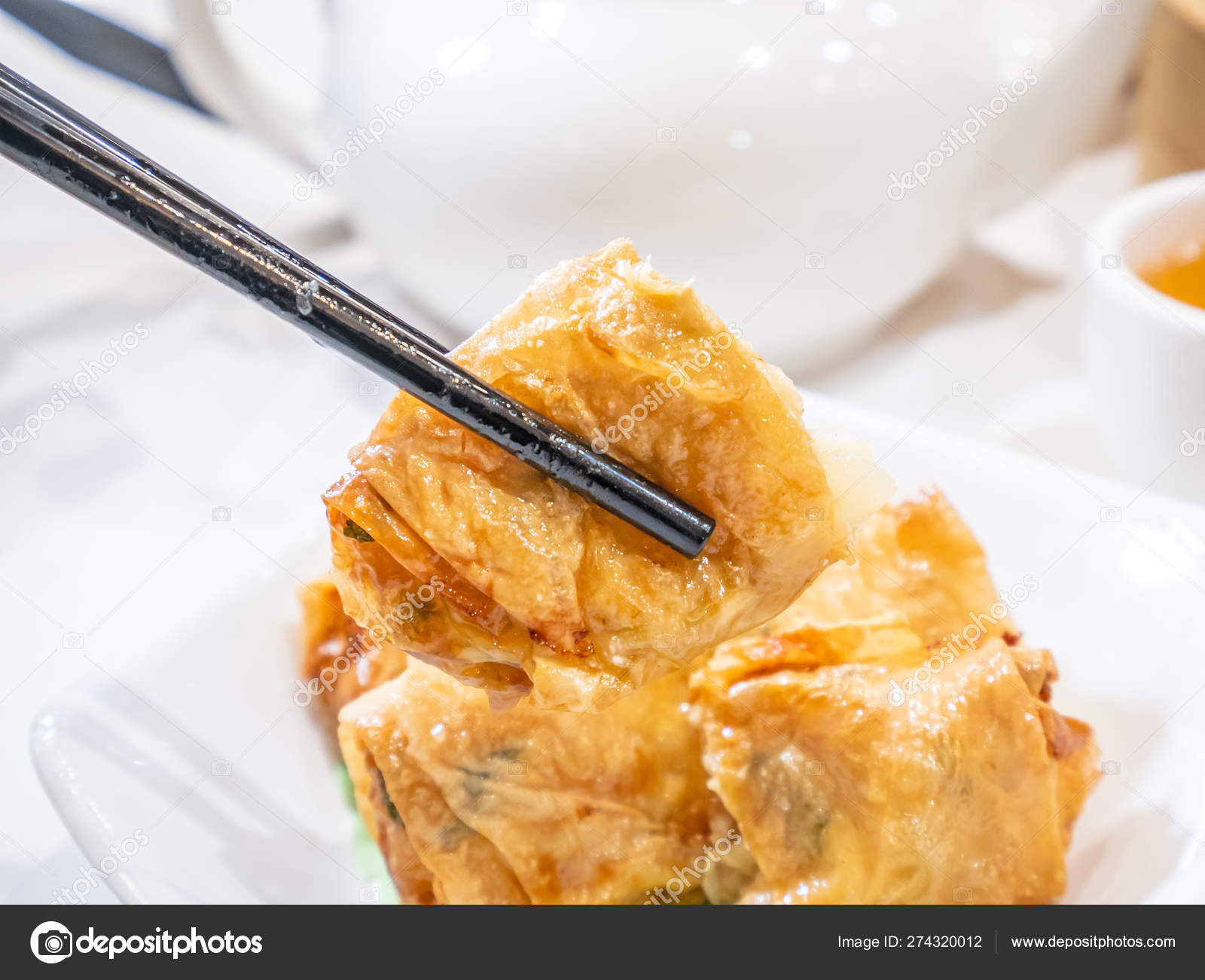 Fried Shrimp Tofu Bean Curd Skin Rolls Chinese Dim Sum Food