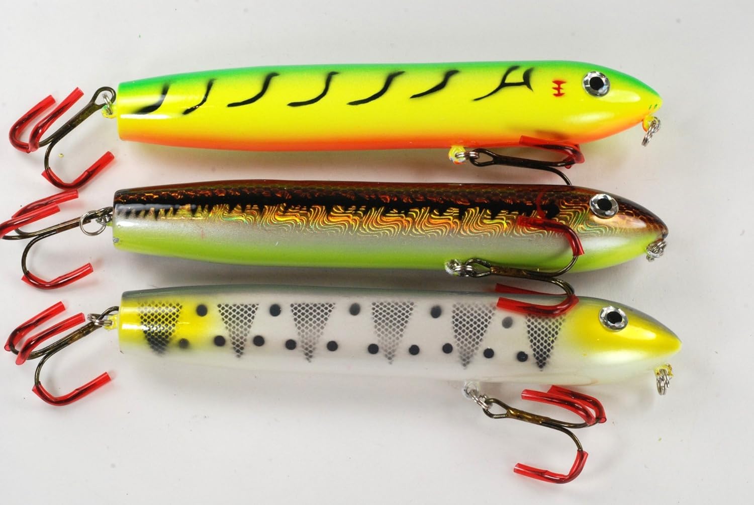 Akuna Lot Of 3 Wooden Hand Made Stickbait Fishing Lures For Muskie
