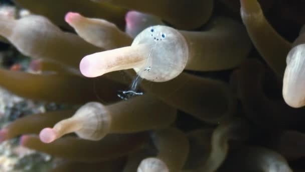 Sea Glass Anemone Commensal Banded Crystal Shrimp Stock Video