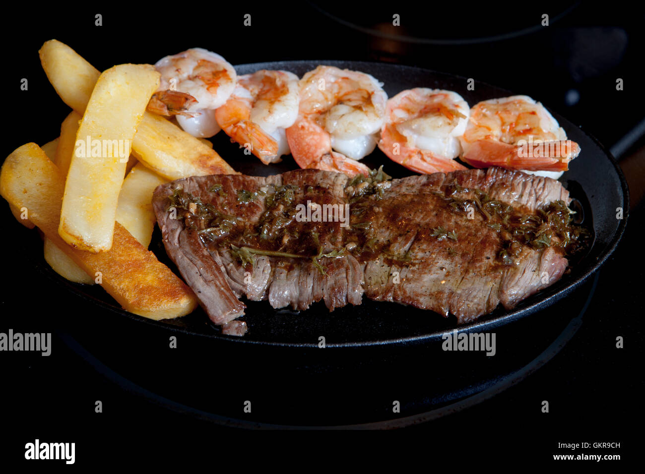 Steak Fries And Shrimps Seafood Stock Photo 115452977 Alamy