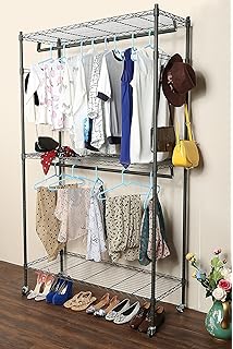 Amazon Com Songmics Double Rod Garment Clothing Rack Rolling