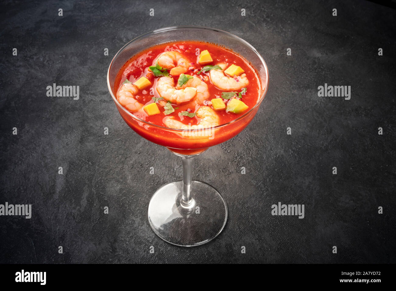 Coctel De Gambas Mexican Shrimp Cocktail With Avocado On A Dark