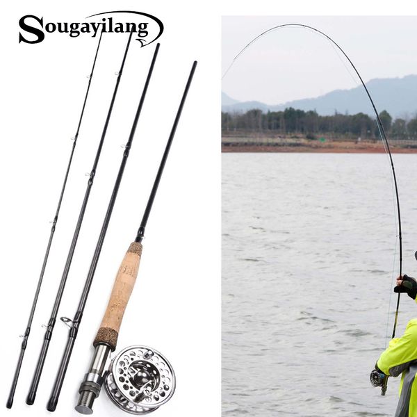 Sougayilang Fishing Rod Reel Combo Carbon Fiber 4 Piece Casting
