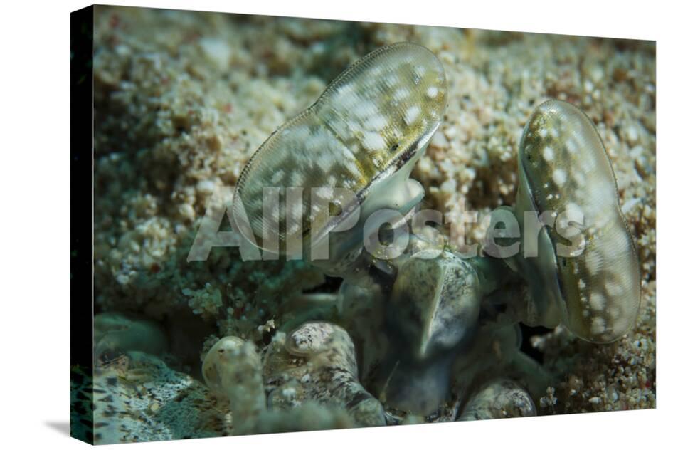 Tiger Mantis Shrimp Is Piping Out From Its Burrow And A Clear