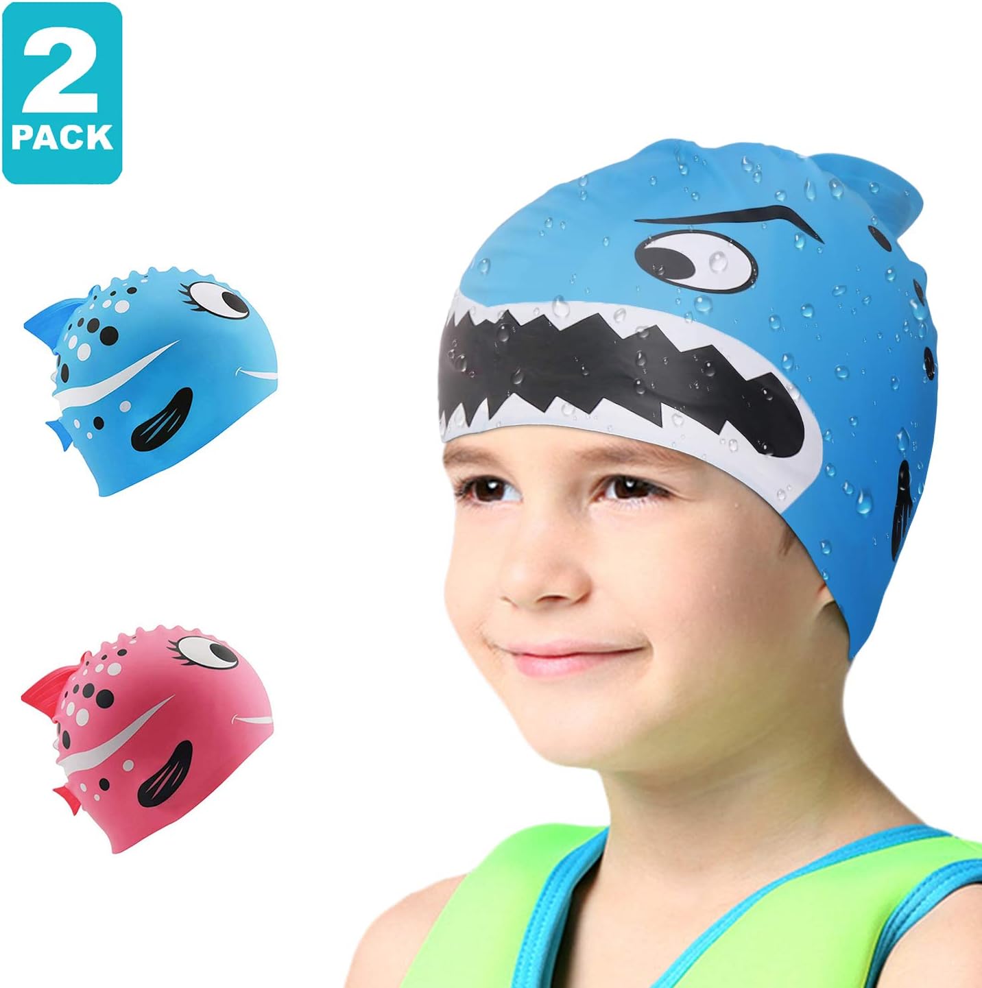 Kids Swimming Caps 2 Pack Silicone Fun Swim Caps For Girls And