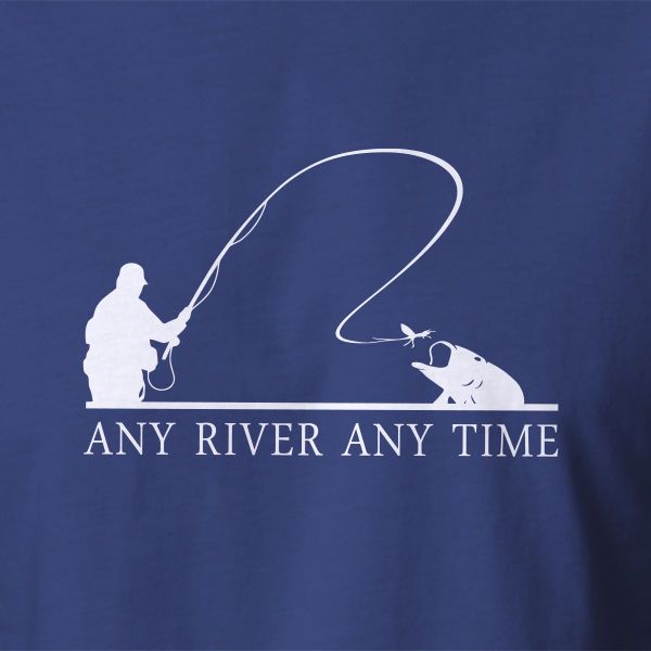 New Fishing Tshirt Any River Any Time Fly Fishing Rod Combo Clamp