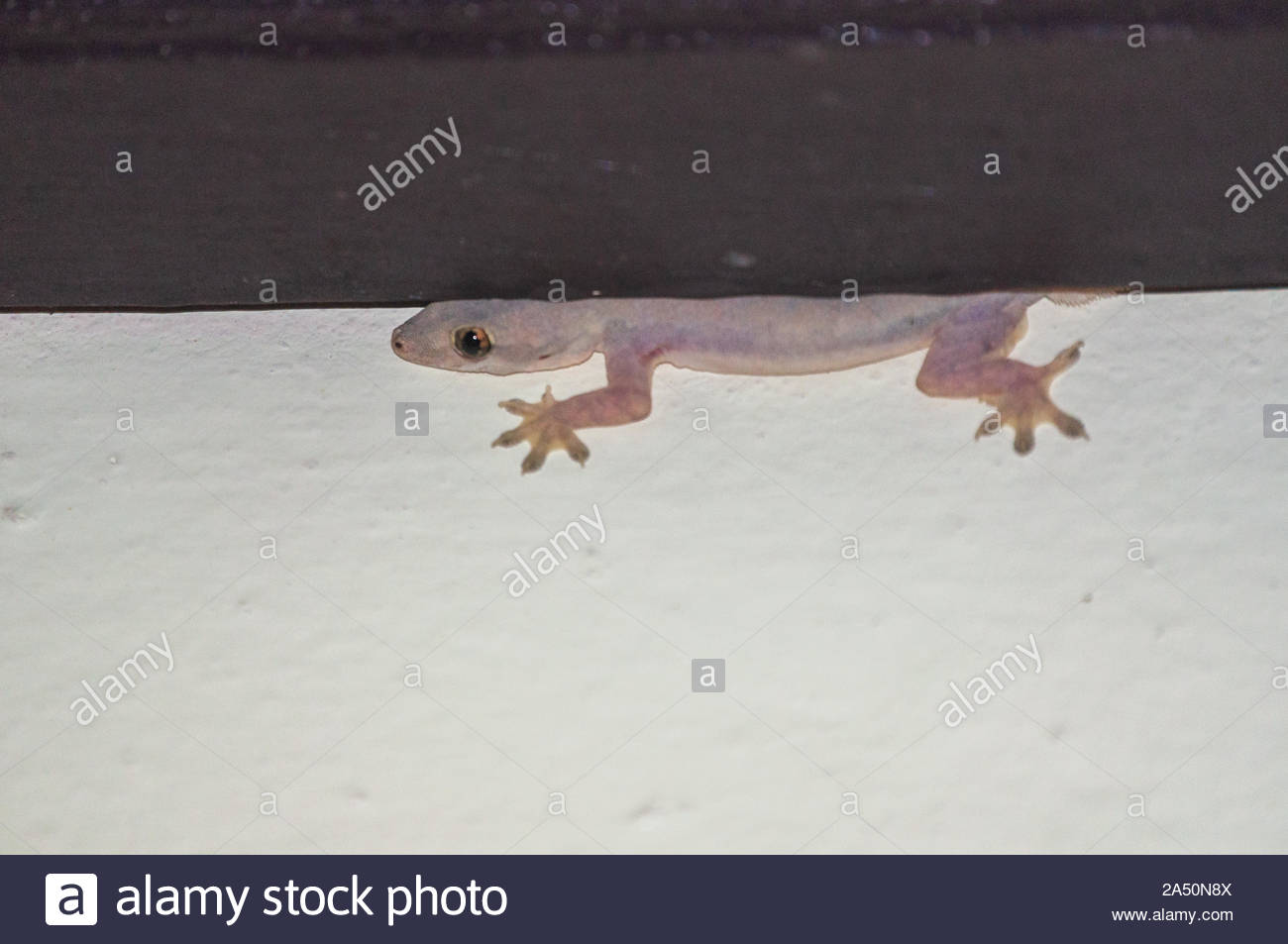 House Lizard Or Little Gecko Hemidactylus Close Up On White